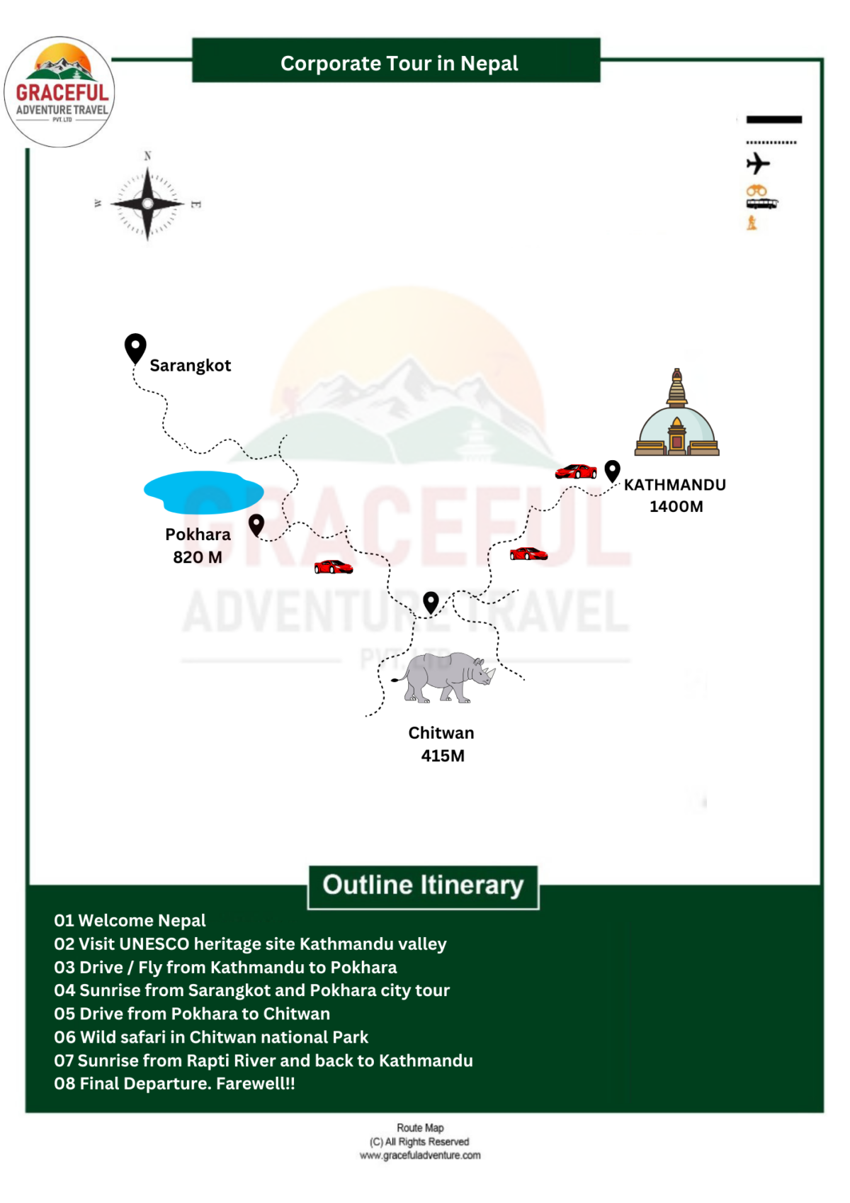 Graceful Adventure is your reliable partner for corporate tours in Nepal, offering a comprehensive range of transportation options both by land and air. When it comes to land travel, we take pride in arranging top-notch land transport services tailored to your group’s size and comfort preferences.