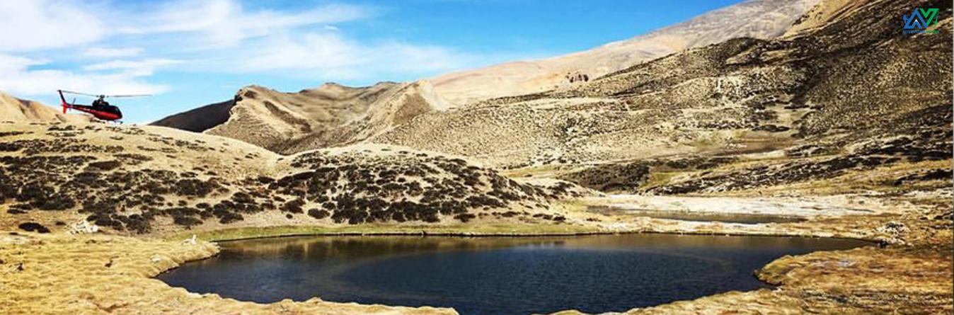 The Damodar Kunda Helicopter Tour package is an extraordinary pilgrimage adventure in Nepal, deeply significant to both Hindu and Buddhist devotees. Located within the Upper Mustang region, in the Gandaki province, this sacred lake lies at the base of the imposing Mt. Damodar, tucked away in a restricted area that necessitates special permits for exploration. At an elevation of 4890 meters above sea level, this journey promises not only spiritual enrichment but also an awe-inspiring visual feast. Travelers are rewarded to breathtaking vistas of the Annapurna range, a varied tapestry of natural sceneries, the enigmatic mountain desert, Tibetan monasteries that reflect ancient traditions, and high alpine vegetation as they traverse this territory.