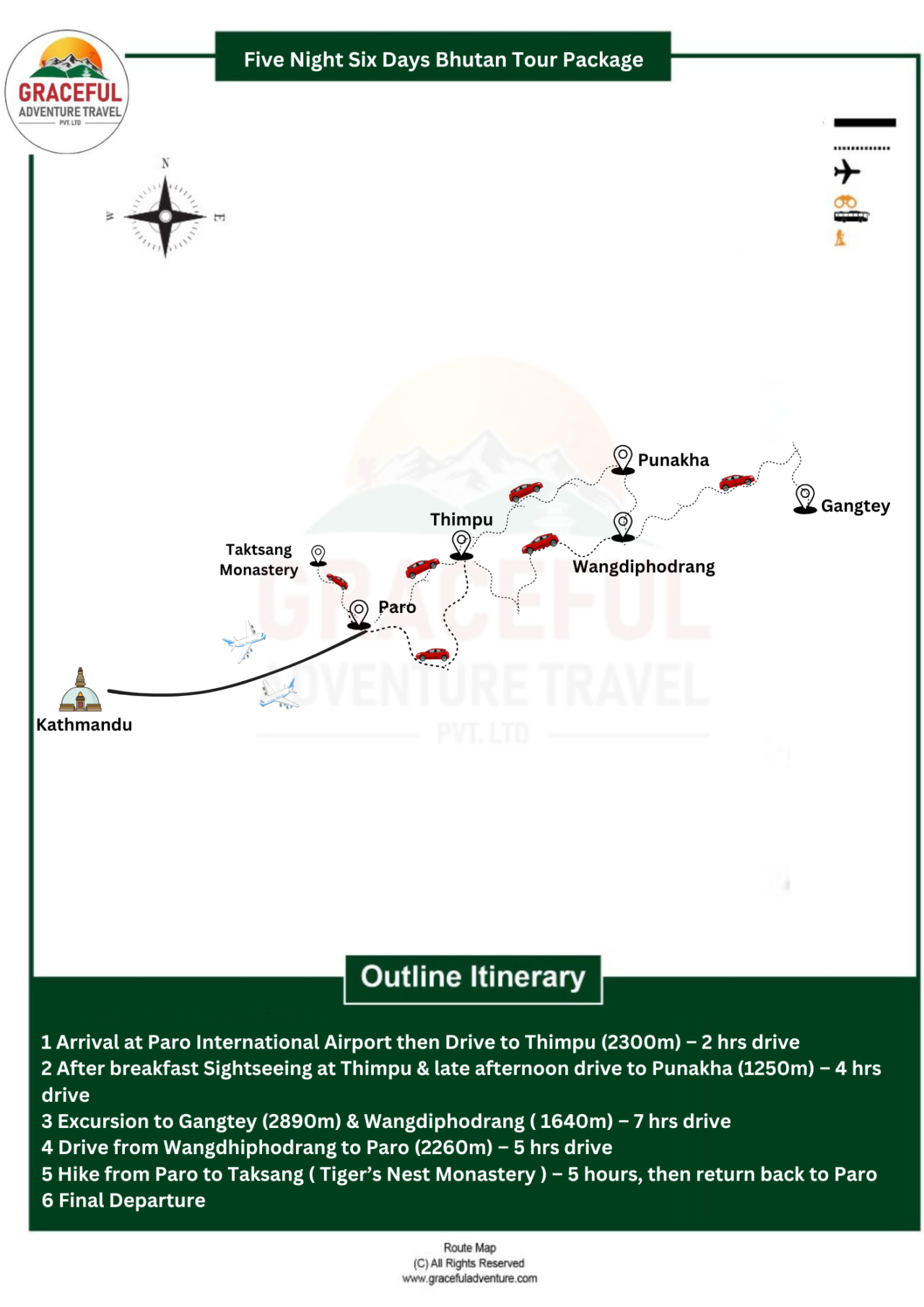 Graceful Adventure Travel delivers the best Five Night Six Days Bhutan Tour Packages with operational excellence in planning and promoting a journey in Bhutan. Every tiny detail from accommodation to mode of transport and guided sightseeing with an expert is done for seamless experience for the tour. The experienced and qualified guides give an insight into Bhutanese culture, history, and geography so that the travelers can appreciate the huge heritage that Bhutan has to offer.