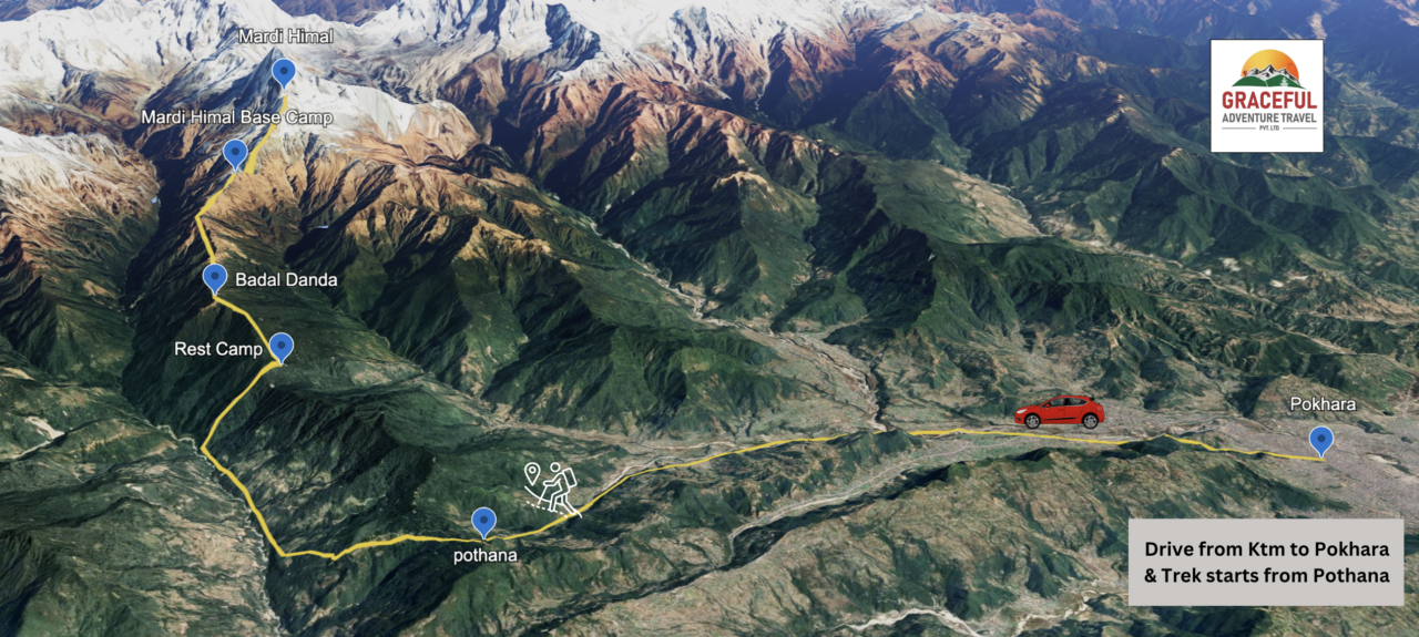 | 4 | Drive from Pokhara to Phedi and trek to Pothana |