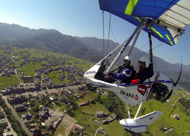 For those looking for a ultimate long aerial ride, the best option is one-hour ultra light flight package being provided by Graceful Adventure Travel. You get a chance on this extended flight to see Pokhara in a radically different perspective with bird’s eye view over the broad valleys, serene Phewa Lake, and the picture-postcard beautifully shaped Annapurna Himalayas. The additional air time allows not only the ability to cover more distance but also allows the pilot to give you a more energetic and thrilling ride, with the potential for subtle aerial aerobatics.